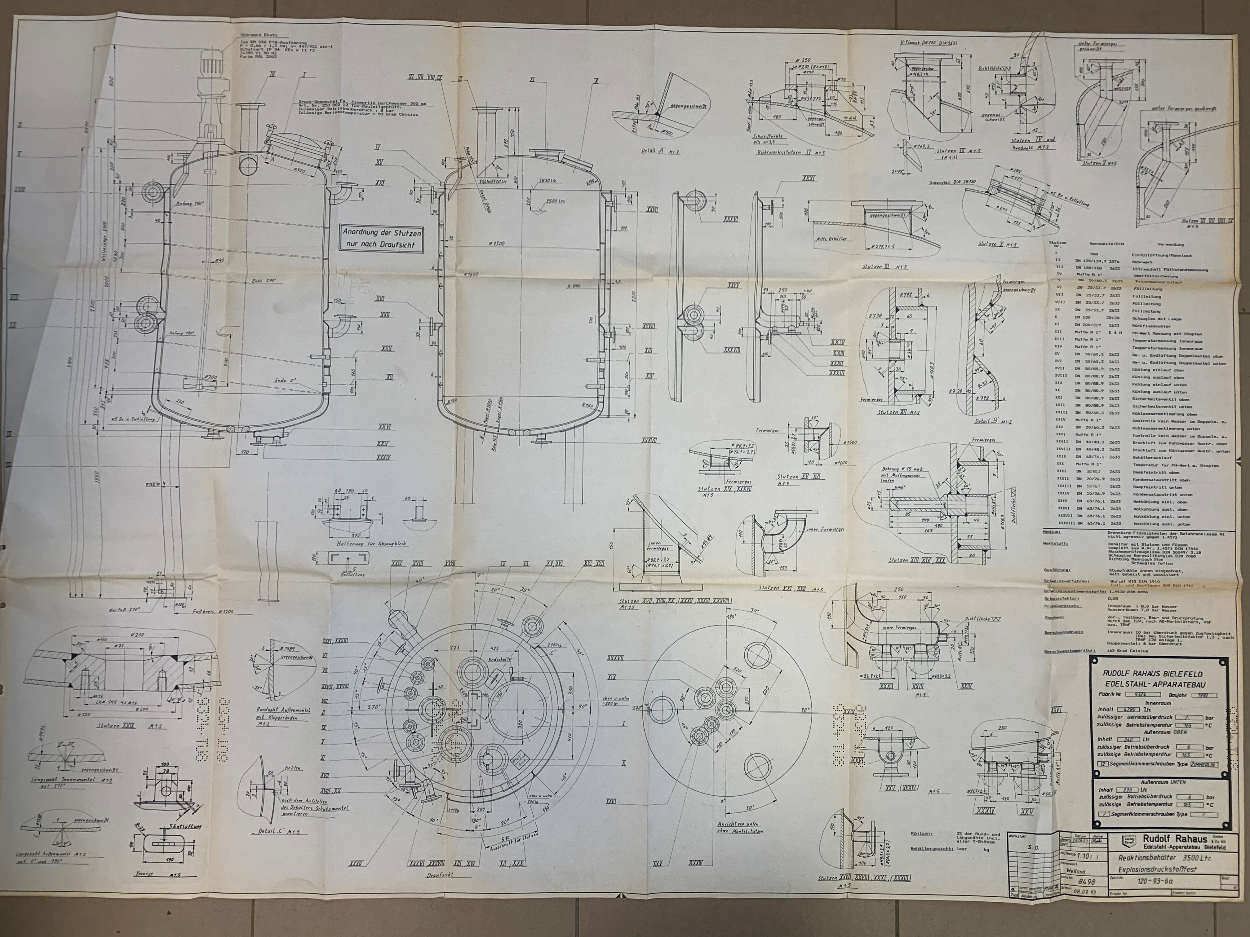 Behälter 4.280 Liter aus V4A temperierbar, isoliert besteht aus dem Material 1.4571(AISI316) V4A. Das Volumen beträgt ca. 4.280,00 Liter. Der Durchmesser innen umfasst 1.500 mm. Behälter 4.280 Liter aus V4A temperierbar, isoliert wurde zuletzt im folgenden Bereich eingesetzt: Chemie. Aktuell sind von Behälter 4.280 Liter aus V4A temperierbar, isoliert noch 1 Stück verfügbar. Die Lieferung kann weltweit stattfinden.