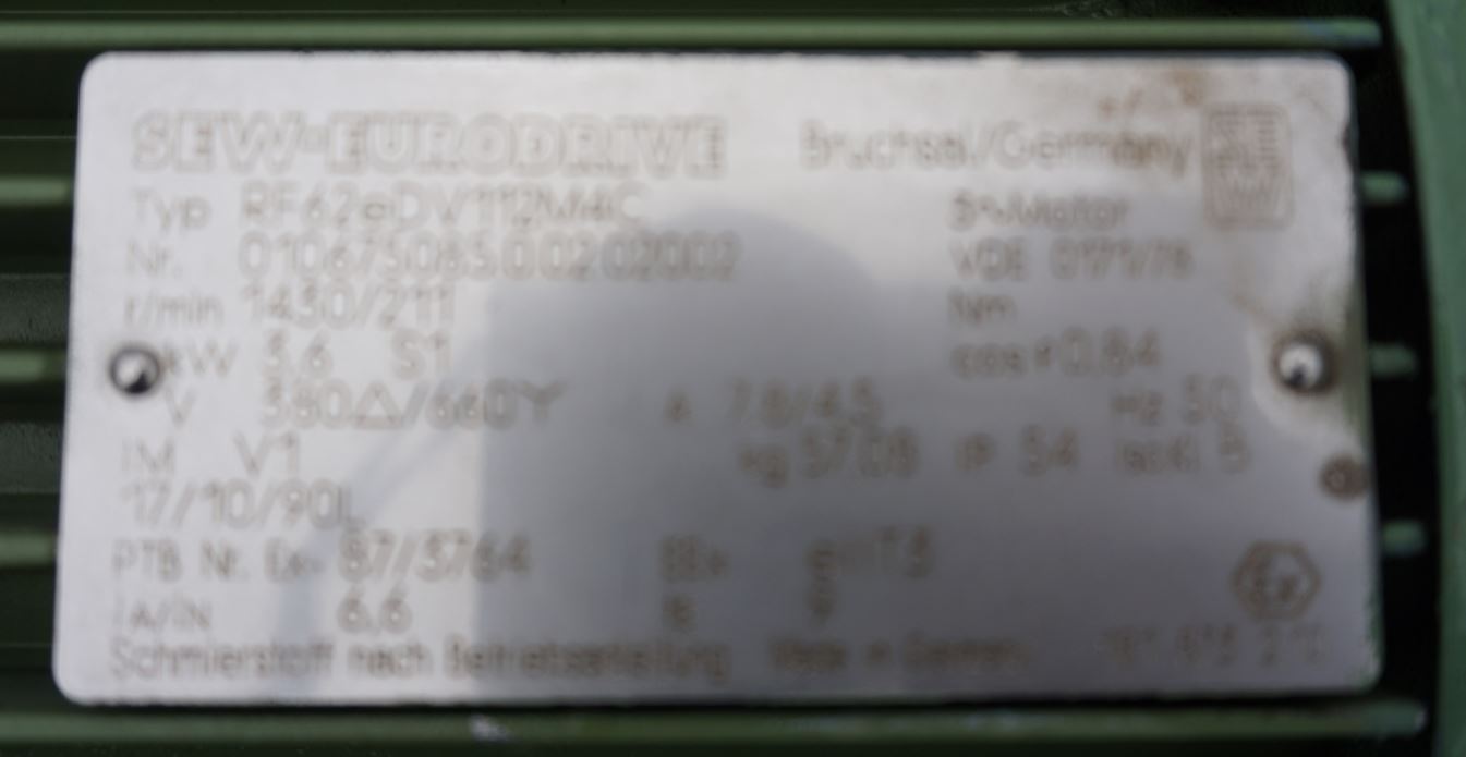 Motor ex-geschützt; die Übereinstimmung mit den aktuell geltenden ATEX-Richtlinien ist zu überprüfen