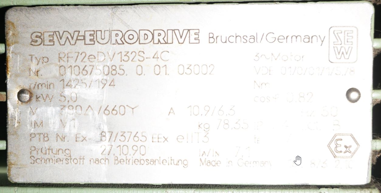 Motor ex-geschützt; die Übereinstimmung mit den aktuell geltenden ATEX-Richtlinien ist zu überprüfen