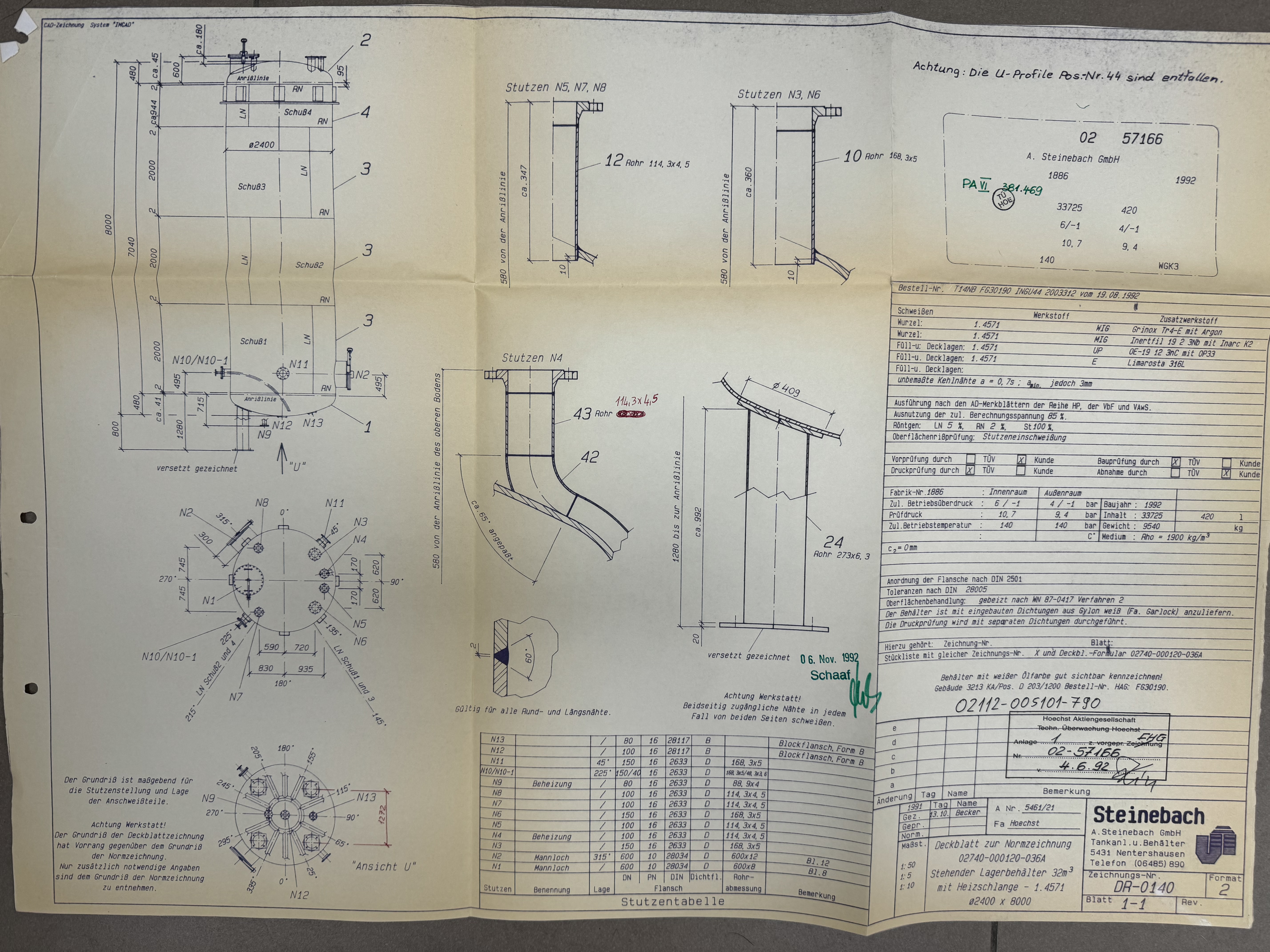 Druckbehälter 33.725 Liter aus V4A, temperierbar, gebraucht besteht aus dem Material 1.4571(AISI316) V4A. Das Volumen beträgt ca. 33.725,00 Liter. Der Durchmesser innen umfasst 2.400 mm. Druckbehälter 33.725 Liter aus V4A, temperierbar, gebraucht wurde zuletzt im folgenden Bereich eingesetzt: Chemie. Aktuell sind von Druckbehälter 33.725 Liter aus V4A, temperierbar, gebraucht noch 1 Stück verfügbar. Die Lieferung kann weltweit stattfinden.