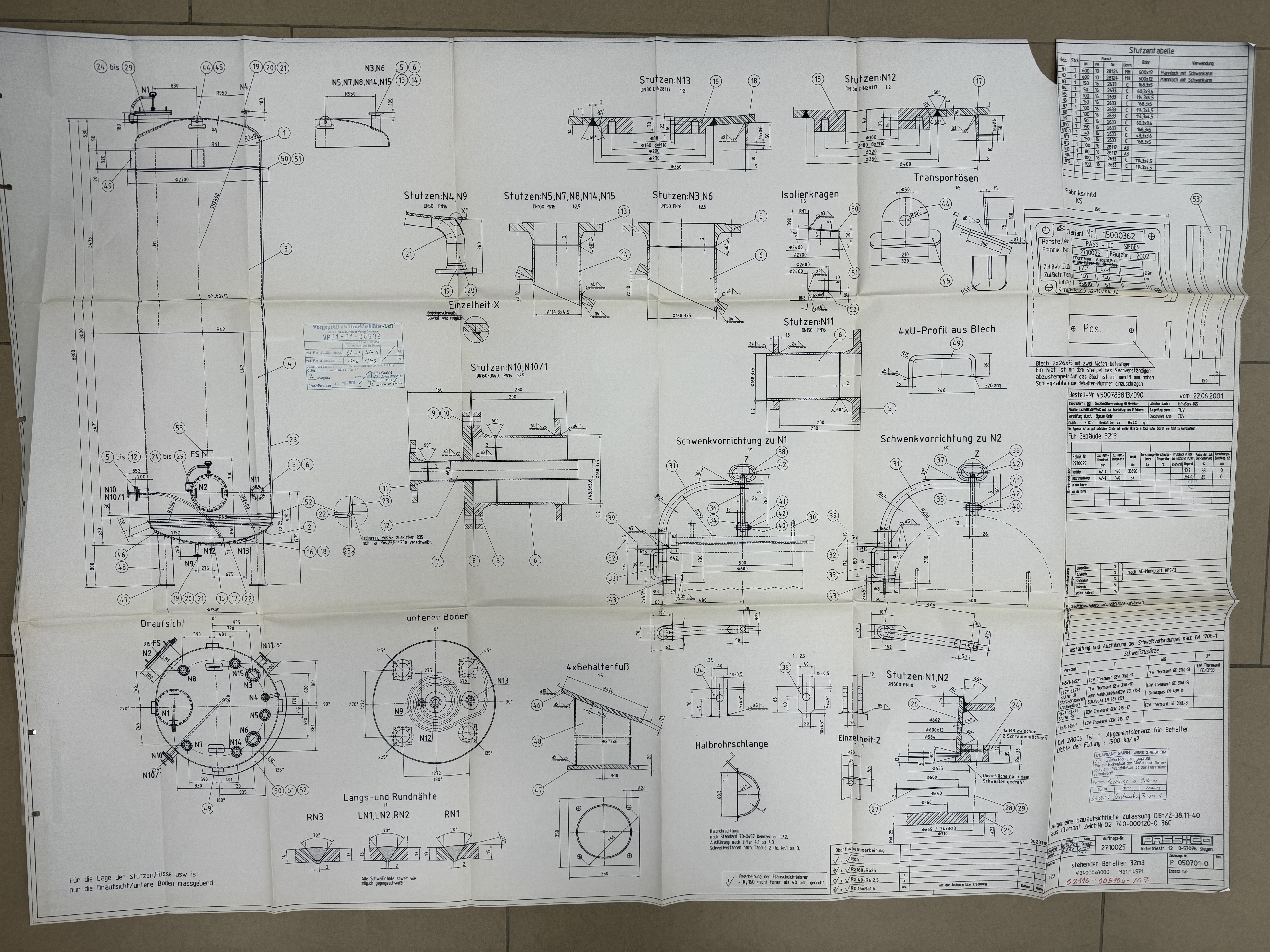 Druckbehälter 33.890 Liter aus V4A, temperierbar, gebraucht besteht aus dem Material 1.4571(AISI316) V4A. Das Volumen beträgt ca. 33.890,00 Liter. Der Durchmesser innen umfasst 2.400 mm. Druckbehälter 33.890 Liter aus V4A, temperierbar, gebraucht wurde zuletzt im folgenden Bereich eingesetzt: Chemie. Aktuell sind von Druckbehälter 33.890 Liter aus V4A, temperierbar, gebraucht noch 1 Stück verfügbar. Die Lieferung kann weltweit stattfinden.